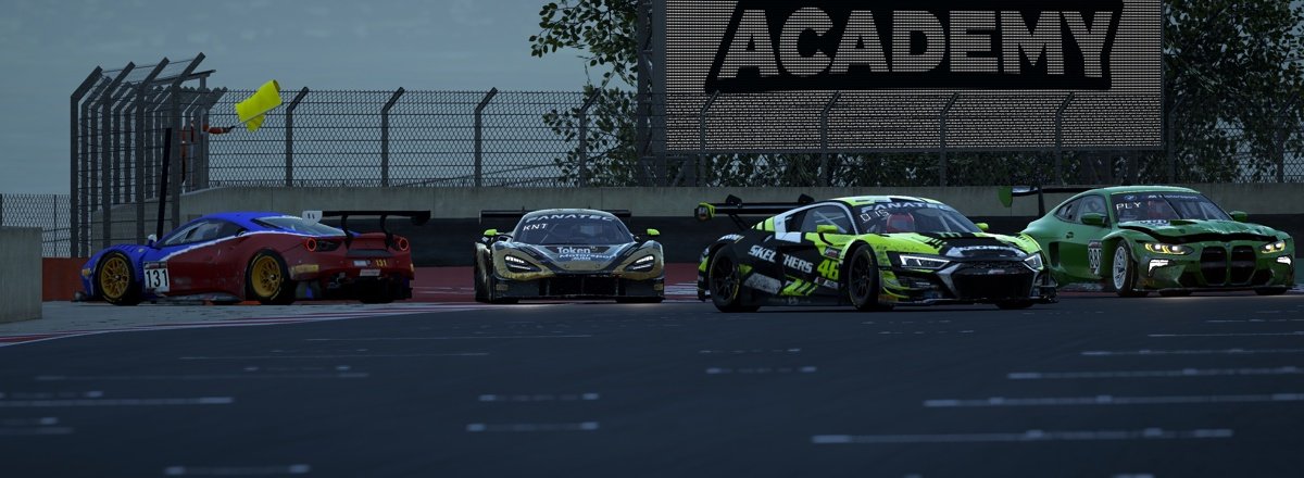 I was within 1 second to Manoijlovic for many laps in a row. Just in the penultimate corner heading in to our final lap is where I heard Jeff yell Yellow flag through the comms. I slowed down knowing from experience that incidents happen in the last corner as it is a place to send it in the inside. looking back at the replay it seems that it was not really a send but two lines became one and there was no more space. This meant that all I had to do is to follow Manoijlovic and go through the gap he made after his collision with the cars that were basically stationary on start finish.